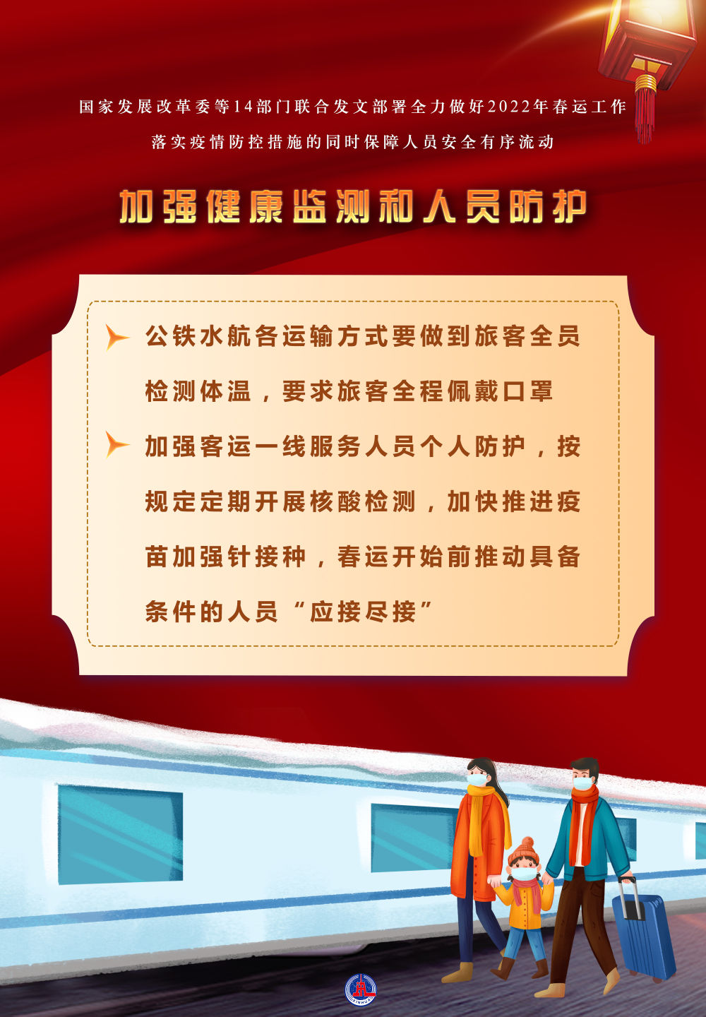 国家发展改革委等14部门联合发文部署全力做好2022年春运工作,落实疫情防控措施的同时保障人员安全有序流动。