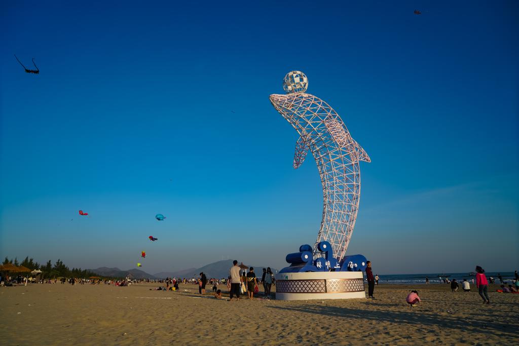 图为游客在陆丰市东海镇旅游沙滩游玩。新华社发