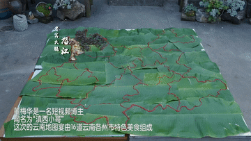 该地图宴由16道云南各州市特色美食组成,每一道菜分别代表一个州市,用一桌菜就可以“吃遍云南”。