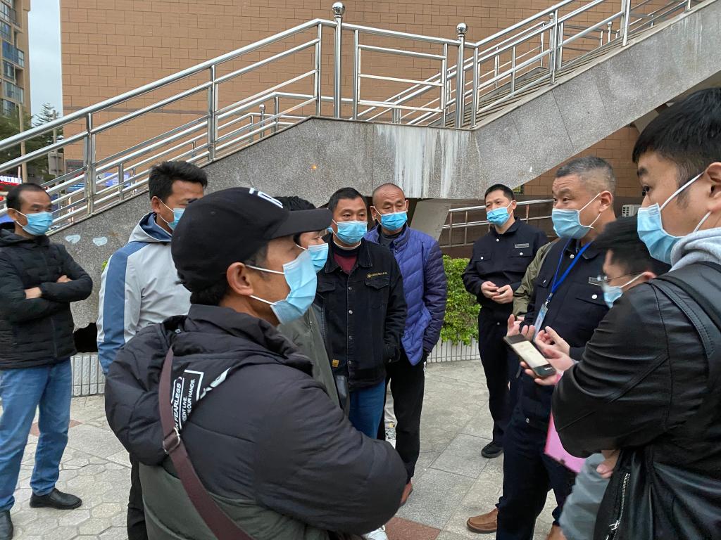 1月18日下午,经过3个多小时的调解,老杨(右三)向务工人员通报“清欠”方案。新华社记者颜之宏 摄