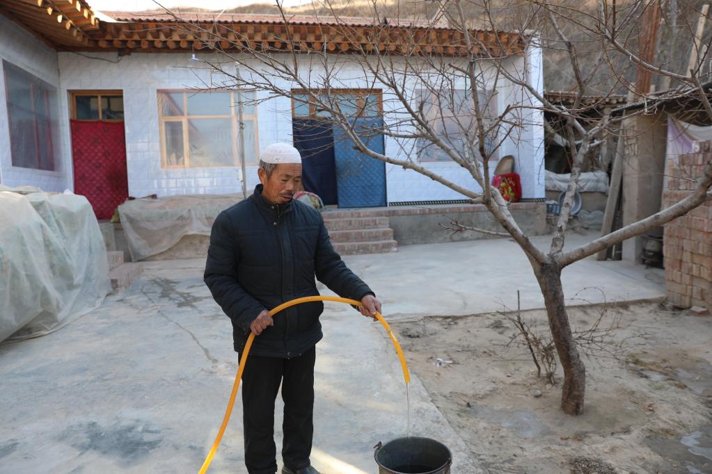 后来,国家逐步开展农村饮水安全工程,东乡族自治县把水管铺设到各个村头,修建集中供水点,一年集中放两次水。水来了,马进文一家人连忙把水存进水窖,可以保障几个月。家里水够了,马进文的儿子就去县城里打工,补贴家用。