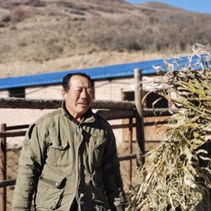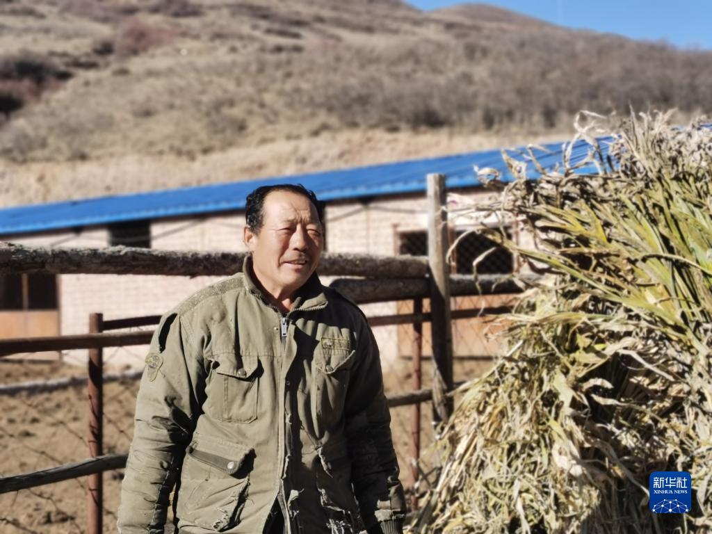冬日清晨,58岁的吕如堂拆开打捆好的秸秆,忙着给合作社的80多头牛准备草料。站在牛圈外,不远处风力发电站的大风车清晰可见,这里的海拔超过2000米,大风刮得脸生疼。