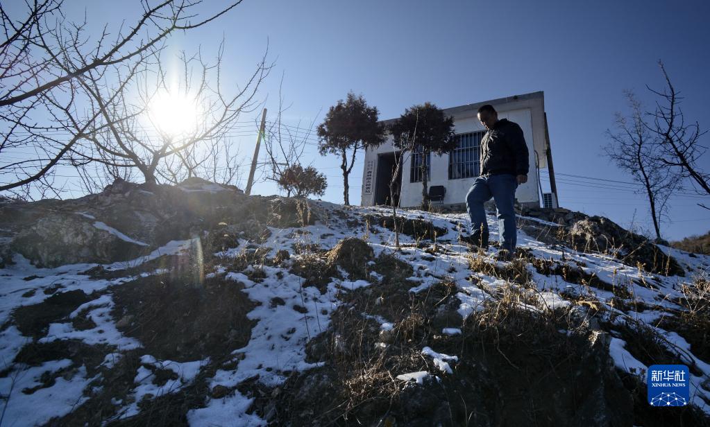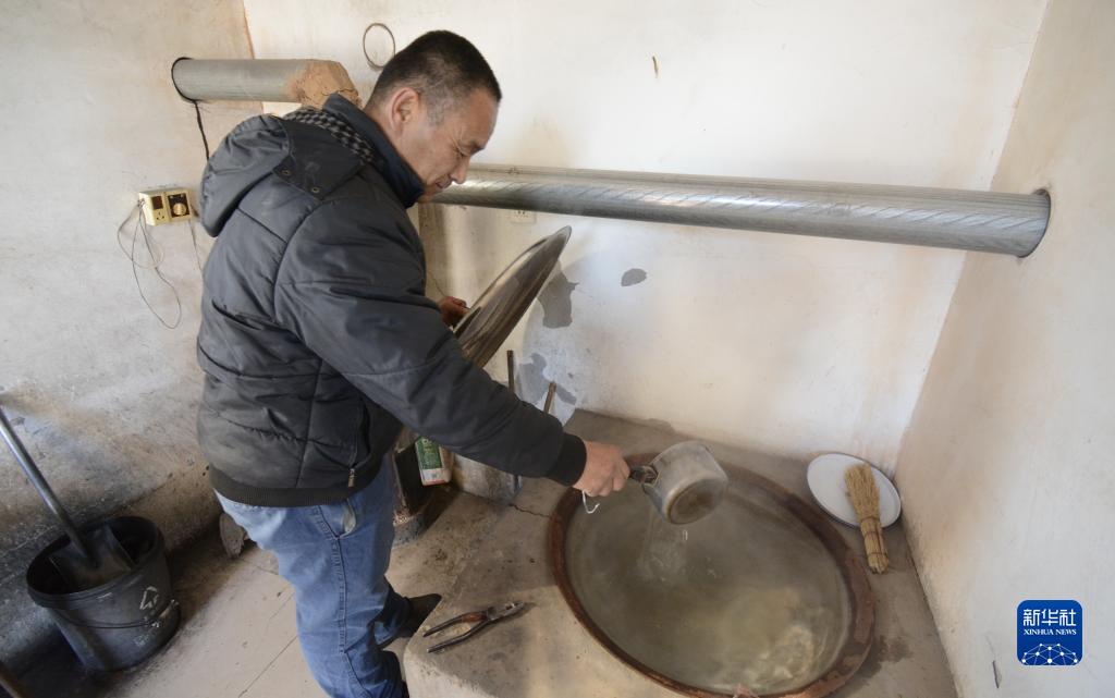 1月27日,孙宝清在骆驼山检查站内烧水、取暖。新华社记者 李欣 摄