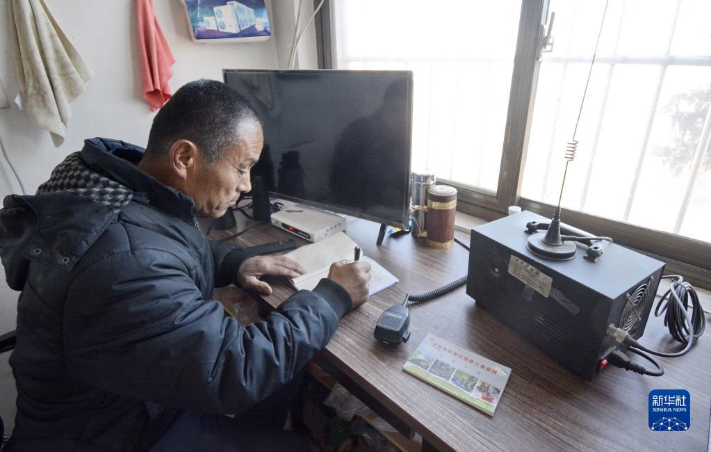 1月27日,孙宝清在骆驼山的森林防火检查站记录每日观察情况。新华社记者 李欣 摄