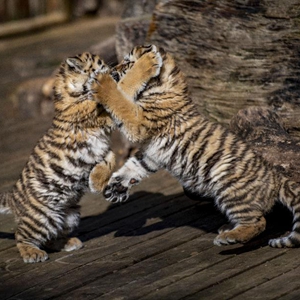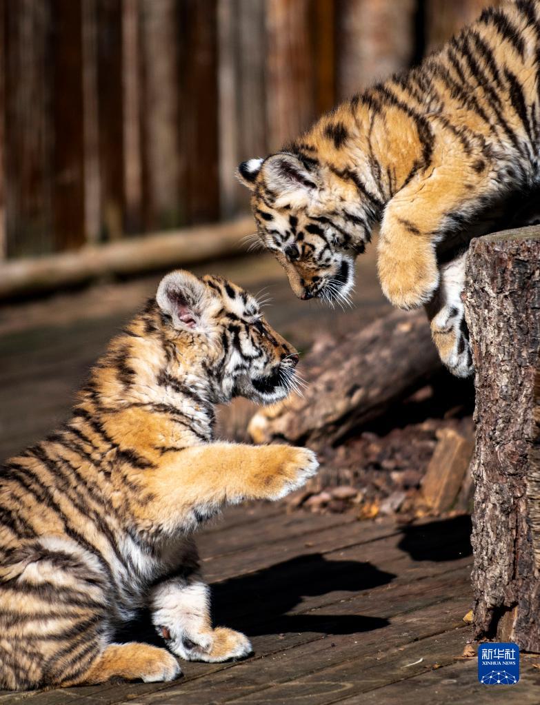 1月30日,云南野生动物园内的两只东北虎幼崽在嬉戏。新华社记者 陈欣波 摄