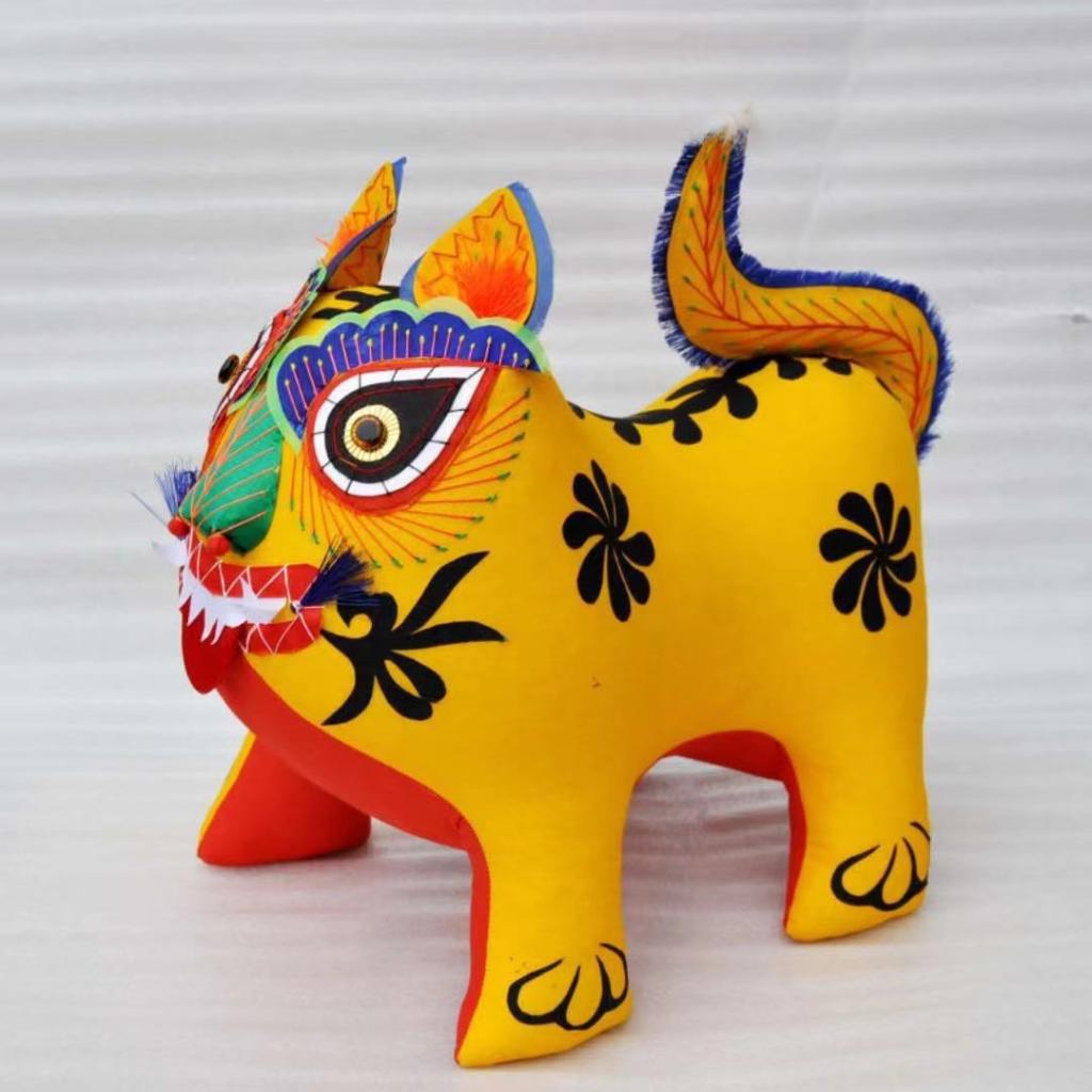 黄布为皮,昂首站立,圆鼓鼓,胖墩墩,憨态可掬又威风凛凛。这就是成为国家级非物质文化遗产的布老虎——山西黎侯虎。