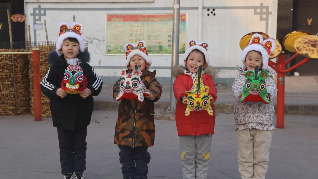 黎城县的小朋友们与布老虎。新华社记者马志异视频截图
