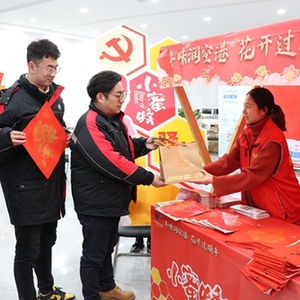 江苏无锡,新吴区硕放街道为快递小哥送上新春祝福和节日礼包。