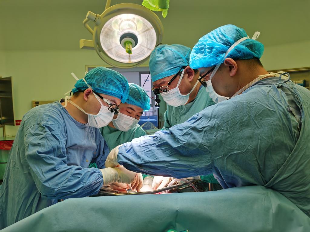 张家旭及同事在进行肝脏移植手术。(受访单位供图)