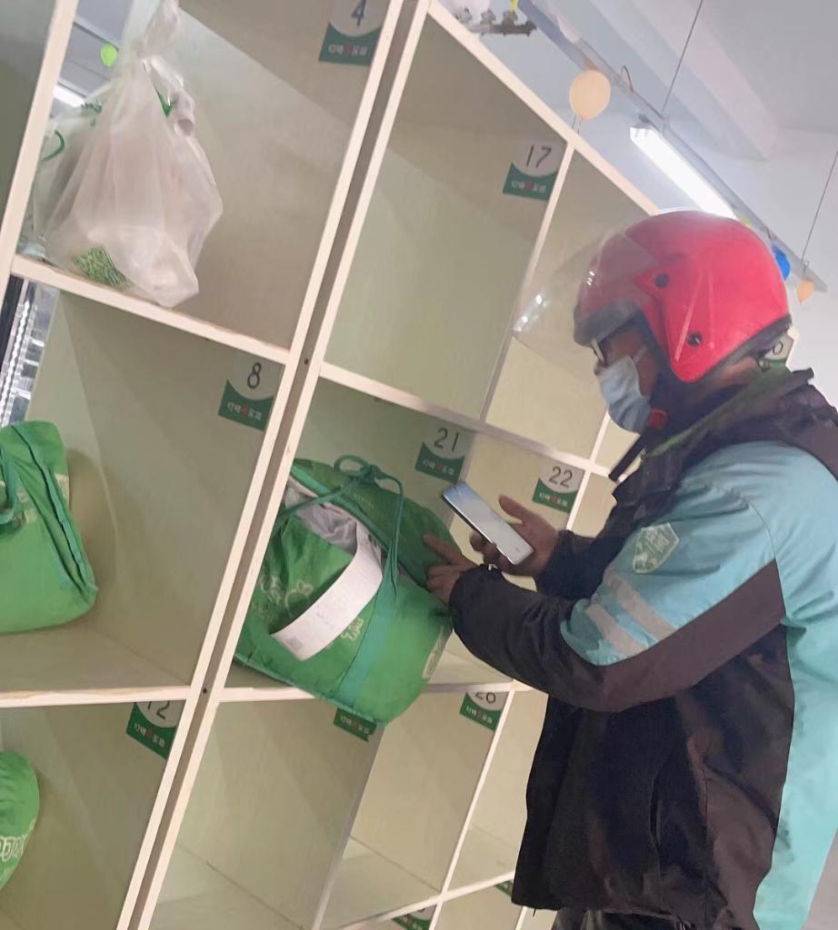 春节里,叮咚买菜新奉站配送小哥在一线工作。(受访对象供图)