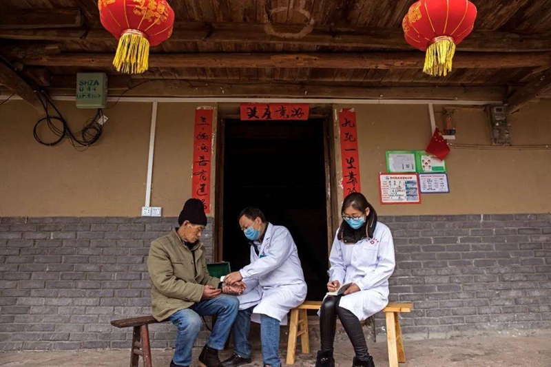 医护人员来到重庆石柱土家族自治县中益乡华溪村谭登周家,对他进行病情随访和健康指导。