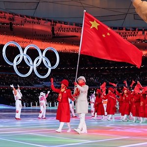 2月4日,第二十四届冬季奥林匹克运动会开幕式在北京国家体育场举行。这是中国代表团在开幕式上入场。新华社记者 曹灿 摄