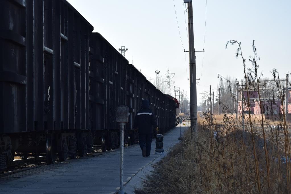 正当记者与赵国栋交流时,一趟火车正好向提钩房徐徐开来,赵国栋用手指了指一节车厢说:“看,那个调车员就扒在那儿。”