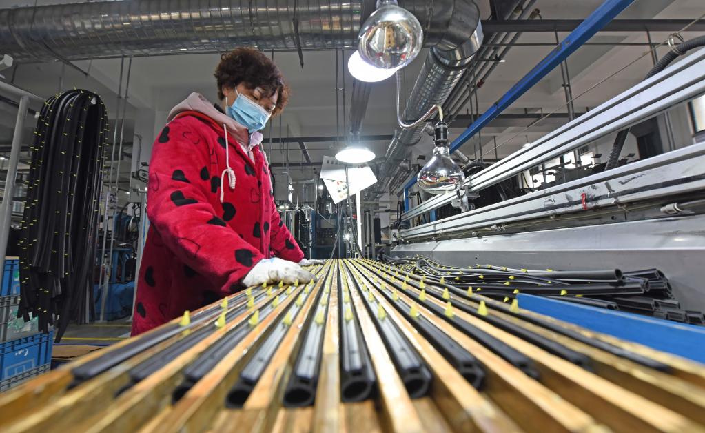 2月7日,在浙江省仙居县经济开发区的一家汽车零部件生产企业,工人在生产线上作业。新华社发(王华斌摄)