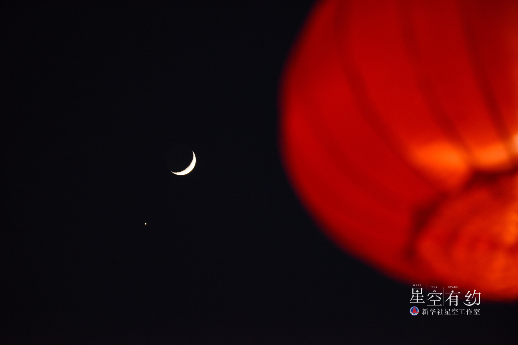 这是2017年1月2日在内蒙古呼和浩特拍摄的“金星合月”。(新华社发)