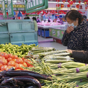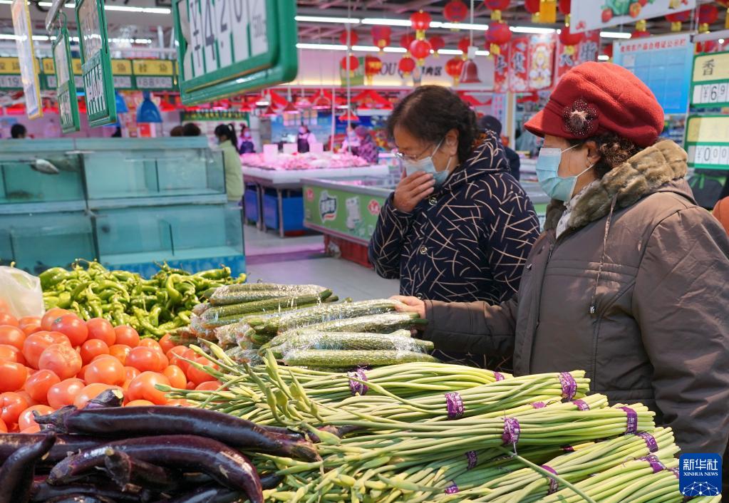 2月13日,在西宁市城北区小桥大街惠客家超市内,市民在选购蔬菜。新华社记者 解统强 摄