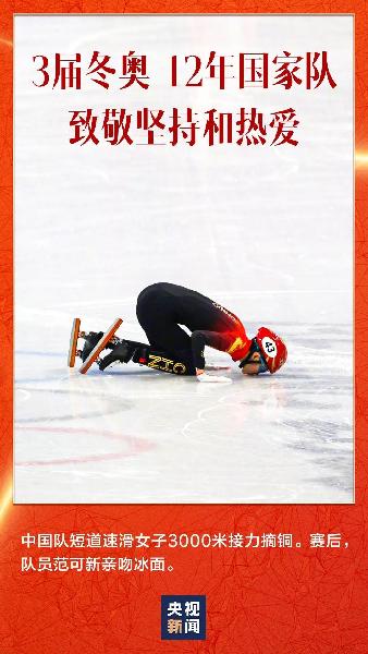 范可新已经参加了3届冬奥会。在上届冬奥会短道速滑女子3000米接力比赛中,范可新因在交接时碰到对手被判犯规,遗憾赛场。范可新曾在接受采访时透露,“每次训练,每次下冰,嗓子都带血。”这四年,范可新究竟吃了多少苦,又付出了多少努力,这就是答案。范可新已经12年没有回家乡七台河过春节。为了这枚奖牌,她等了很久,今天终于如愿!