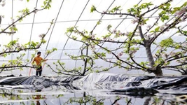 扫雪铲冰作业车正在清扫积雪。(北京市延庆区委宣传部供图)