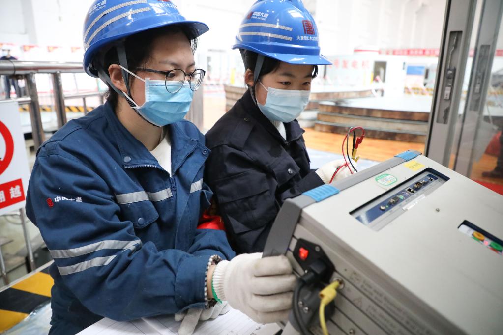 2月12日,在甘肃省陇南市文县,大唐苗家坝水电站工作人员在进行设备检修。(新华社记者马希平 摄)