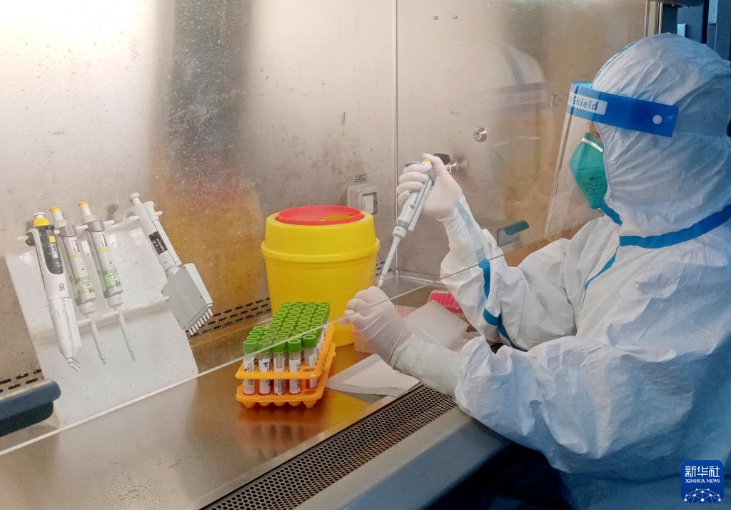上海国际旅行卫生保健中心检测实验室工作人员在对入境人员采样样本进行检测(2月14日摄)。新华社发