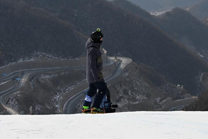 2月9日,在国家高山滑雪中心,陈益宸在比赛开始前查看拍摄点位。