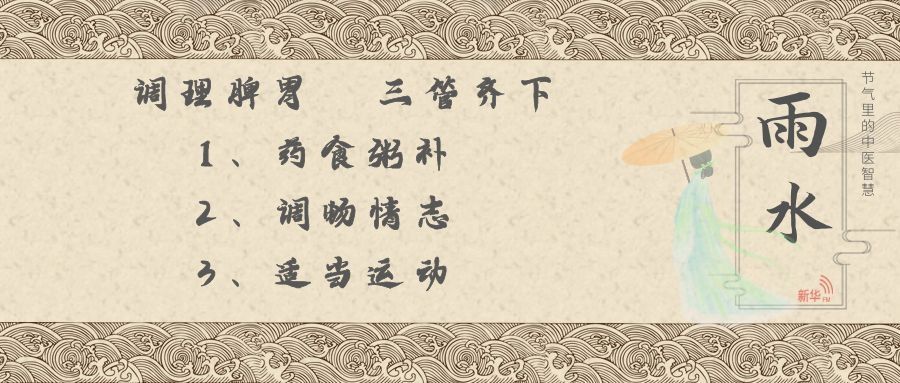 雨水养生重点是“防湿邪,调脾胃”,重在“避”与“祛”。