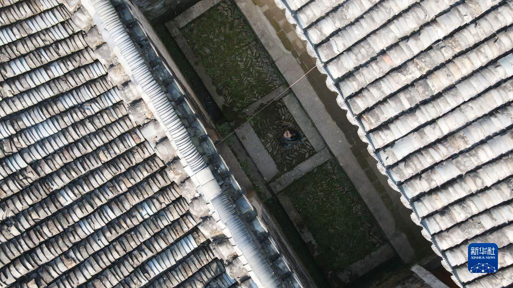 2月24日,刘琳在修缮后的万涧村杨家老屋内(无人机照片)。