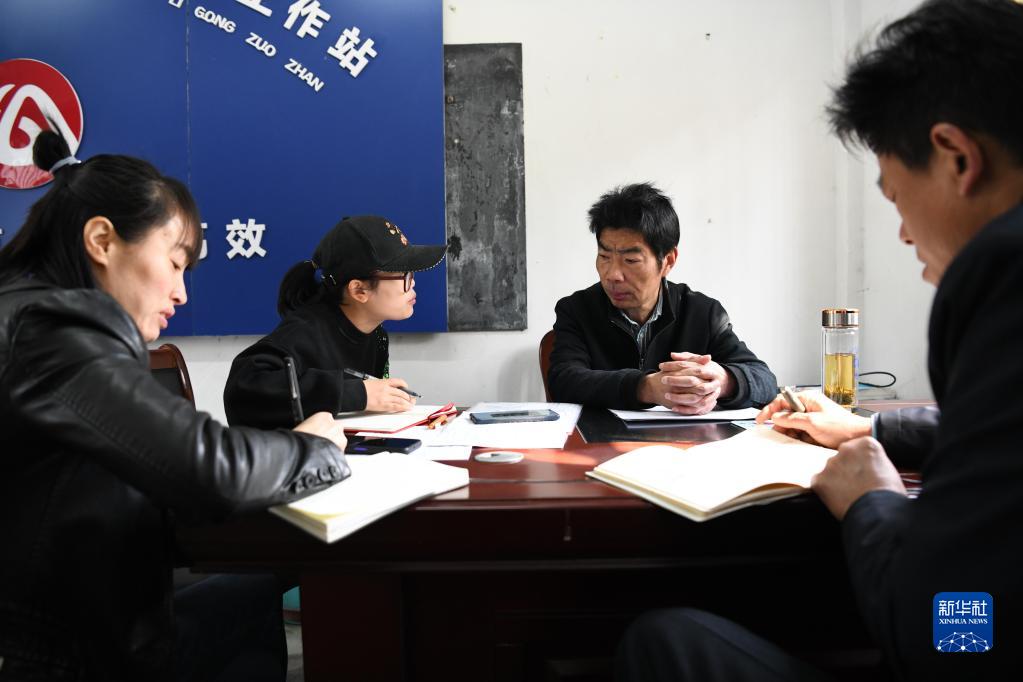2021年3月26日,刘琳(左二)与万涧村的村干部交流。