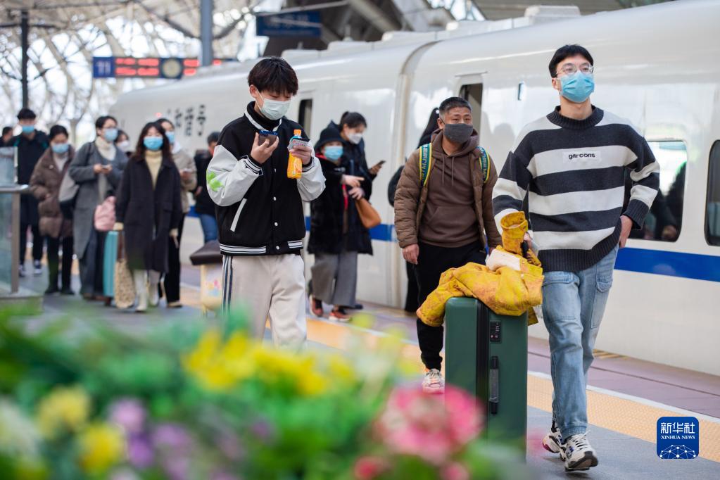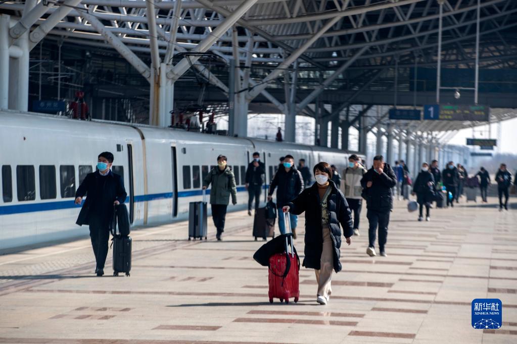 2月25日,旅客在南京火车站乘车出行。当日是2022年春运最后一天。据悉,2022年春运全国预计发送旅客10.5亿人次,日均发送旅客2625万人次,比2021年同比增长20.7%。 新华社发(苏阳 摄)
