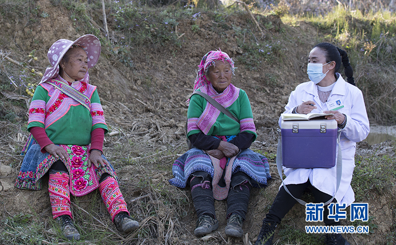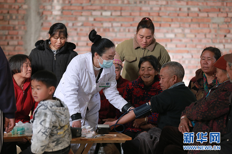 杨莲英在为村民体检(2月10日摄)。新华网赵普凡 摄