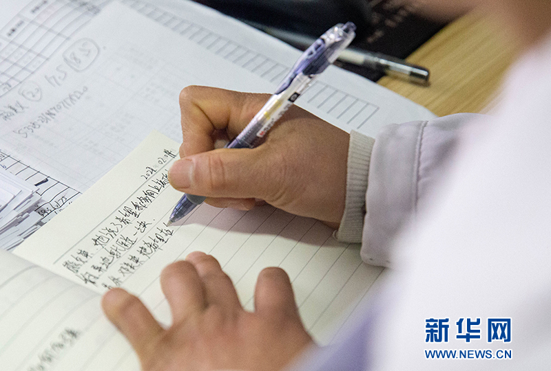 杨莲英在整理收集到的民情民意(2月11日摄)。新华网赵普凡 摄