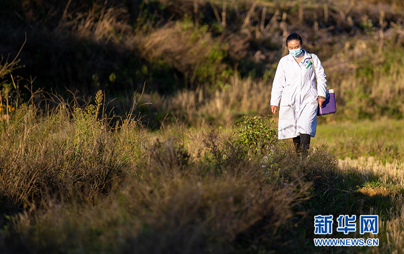 杨莲英在随访途中(2月11日摄)。新华网李浩 摄