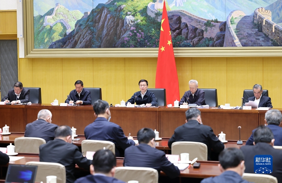 3月1日,中共中央政治局常委、国务院副总理、碳达峰碳中和工作领导小组组长韩正在北京主持召开碳达峰碳中和工作领导小组全体会议。 新华社记者 王晔 摄