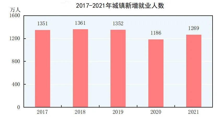 2021年全国城镇新增就业达1269万人,