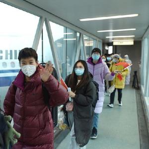 3月5日,中国公民乘坐临时航班抵达郑州新郑国际机场。当日上午9时46分,第二架接返自乌克兰撤离中国公民临时航班安全抵达郑州。新华社记者 郝源 摄
