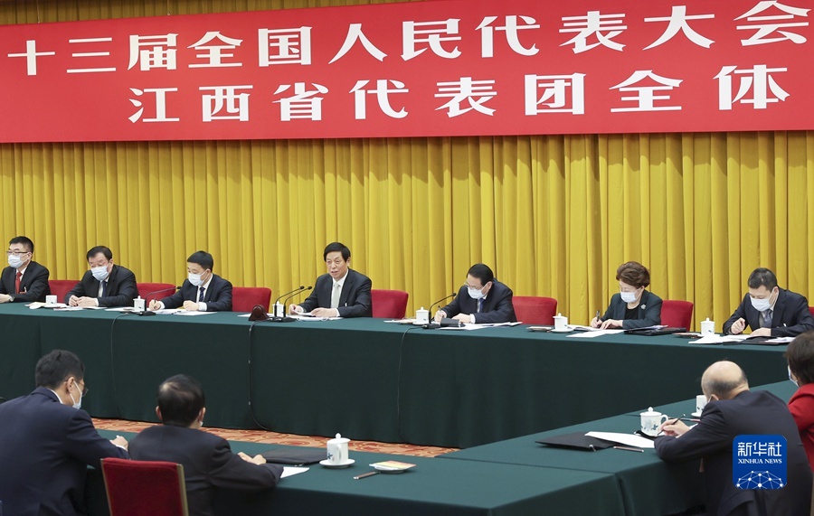 3月5日,中共中央政治局常委、全国人大常委会委员长栗战书参加十三届全国人大五次会议江西代表团的审议。新华社记者 姚大伟 摄