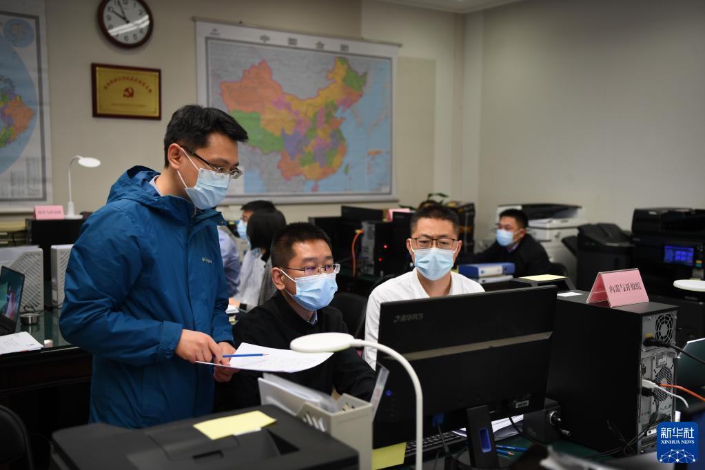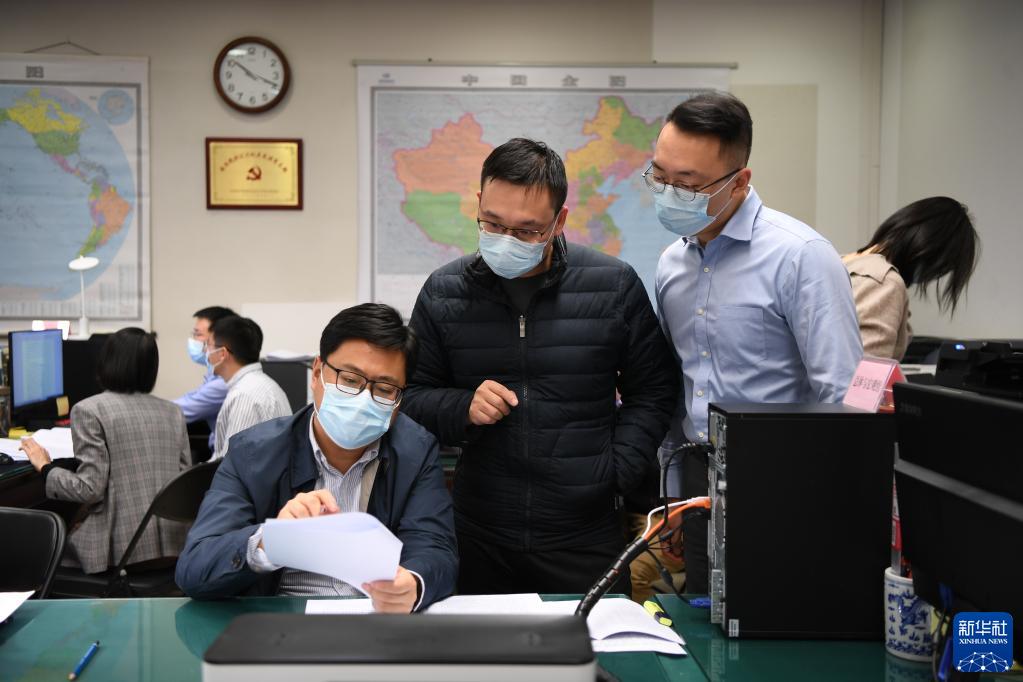 3月5日,国务院办公厅工作专班工作人员在认真工作。新华社记者 任鹏飞 摄