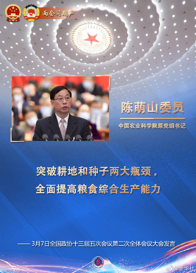 7日上午,全国政协十三届五次会议举行第二次全体会议。12名委员作大会发言。陈萌山委员发言。
