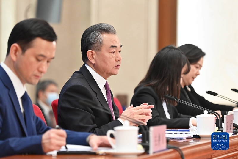 3月7日,十三届全国人大五次会议在北京人民大会堂新闻发布厅举行记者会,邀请国务委员兼外交部长王毅就“中国外交政策和对外关系”相关问题回答中外记者提问。为有效防控疫情,共同维护公共卫生与健康,记者会采用网络视频形式进行。 新华社记者 李鑫 摄