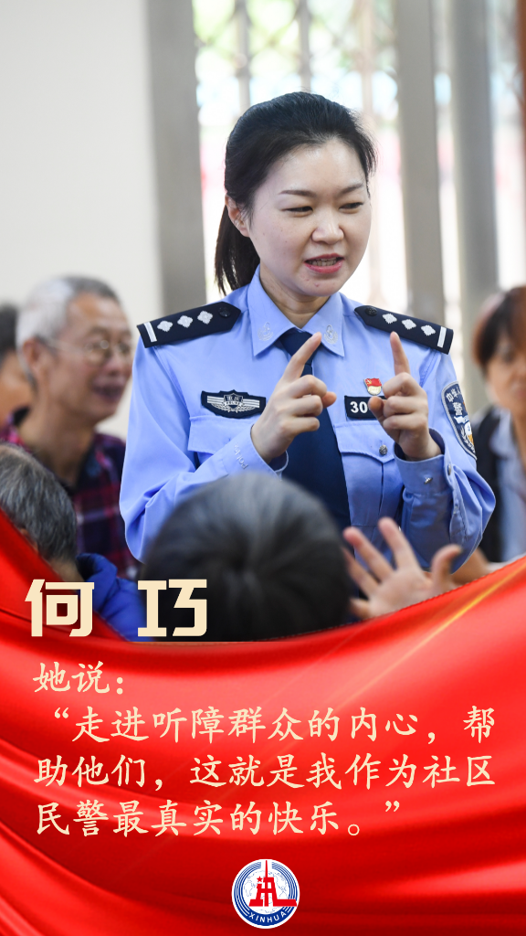 何巧所负责的小区,有100余名听障居民。为了走进他们的内心,何巧决定自学手语。从日常问候到话家常、聊心事、调查情况,何巧的手语越来越熟练,和他们的沟通也越来越顺畅。如今,社区听障居民有什么想法和需求都愿意找她“诉说”。“有困难找何巧”“要办事找何警官”成为社区听障居民的共识。