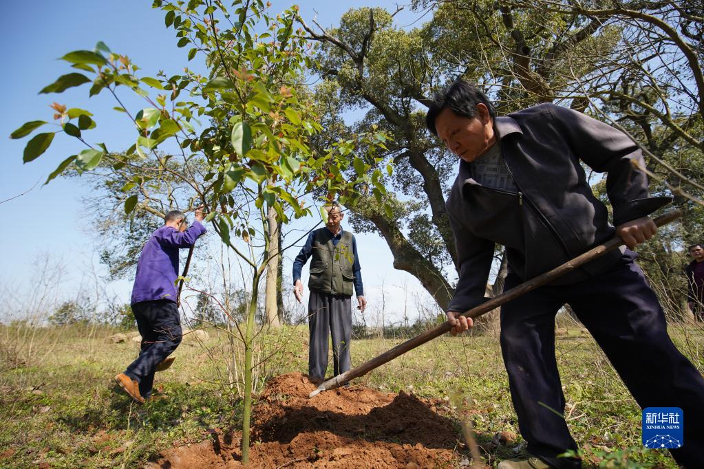 新华社南昌3月11日电(记者余刚)阳春三月,赣江江畔,78岁的金滩村村民康昭训,为樟树苗添了最后一锹土,千年古樟旁又多了一棵幼小的樟树。