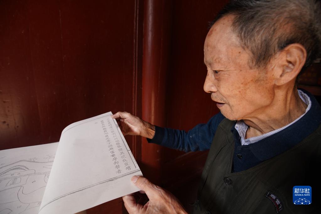 康昭训向记者展示族规(3月10日摄)。新华社记者 余刚 摄
