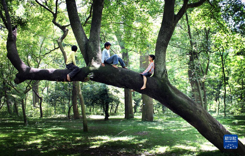 孩童在樟树林中玩耍(资料照片)。新华社发(受访者供图)