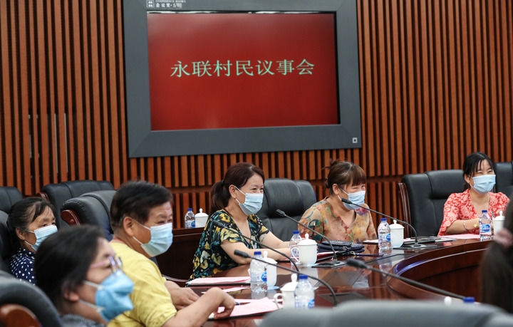 江苏省张家港市永联村永全社区的居民代表在村议事厅民主协议社区环境整治问题(2020年6月19日摄)。 新华社记者杨磊摄