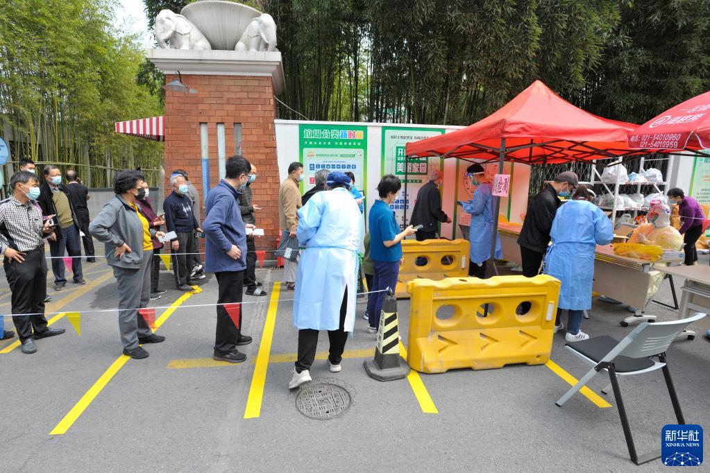 3月13日,上海市明园小安桥小区的居民排队等待接受核酸检测。新华社记者 高峰 摄