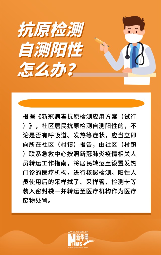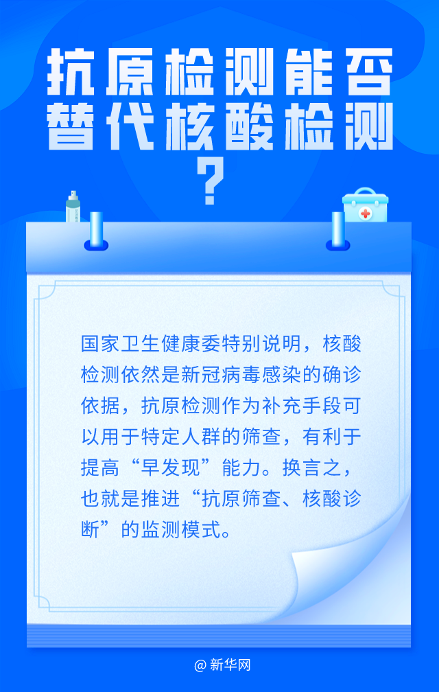 《新冠病毒抗原检测应用方案(试行)》中也明确,核酸检测是新冠病毒感染的确诊依据。在进行核酸检测确认的过程中,如核酸检测阳性,不论抗原检测结果是阳性还是阴性,均按照新冠病毒感染者或新冠肺炎确诊患者采取相应措施;如核酸检测阴性但抗原检测阳性,则视同新冠病毒感染者采取集中隔离等措施,密切观察,连续进行核酸检测。(文案/海报:王莹 根据国家卫健委官网消息梳理)