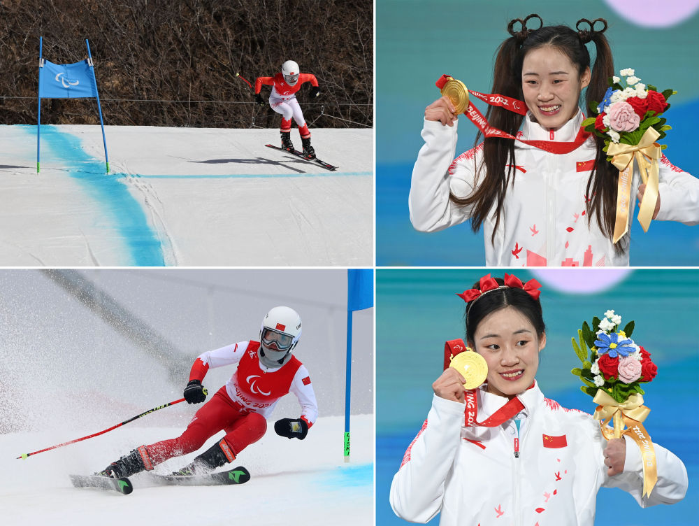 ↑北京冬残奥会期间,中国选手张梦秋夺得了残奥高山滑雪女子超级大回转(站姿)和女子大回转(站姿)比赛两个项目的金牌。这是拼版照片:左上图为3月6日,张梦秋在残奥高山滑雪女子超级大回转(站姿)比赛中(新华社记者张晨霖摄);右上图为张梦秋在残奥高山滑雪女子超级大回转(站姿)比赛颁奖仪式上展示金牌(新华社记者李嘉南摄);左下图为3月11日,张梦秋在残奥高山滑雪女子大回转(站姿)比赛中(新华社记者雒圆摄);右下图为张梦秋在残奥高山滑雪女子大回转(站姿)比赛颁奖仪式上展示金牌。(新华社记者李嘉南摄)