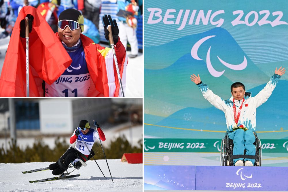 ↑北京冬残奥会期间,中国选手郑鹏夺得残奥越野滑雪男子长距离(坐姿)和男子短距离(坐姿)金牌。这是拼版照片:左上图为3月6日,郑鹏在男子长距离(坐姿)比赛后庆祝夺冠(新华社记者侯昭康摄),左下图为郑鹏在残奥越野滑雪男子长距离(坐姿)比赛中(新华社记者赵子硕摄);右图为3月9日,郑鹏在男子短距离(坐姿)比赛颁奖仪式上庆祝。(新华社记者王曦摄)