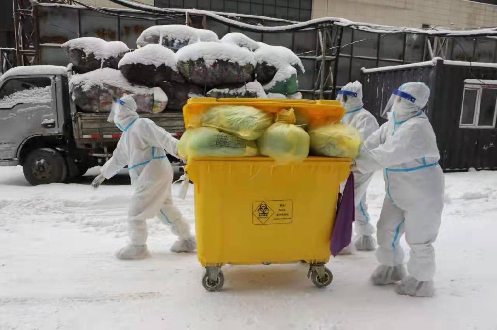 工作人员运送医疗垃圾。 (吉林省人民医院供图)