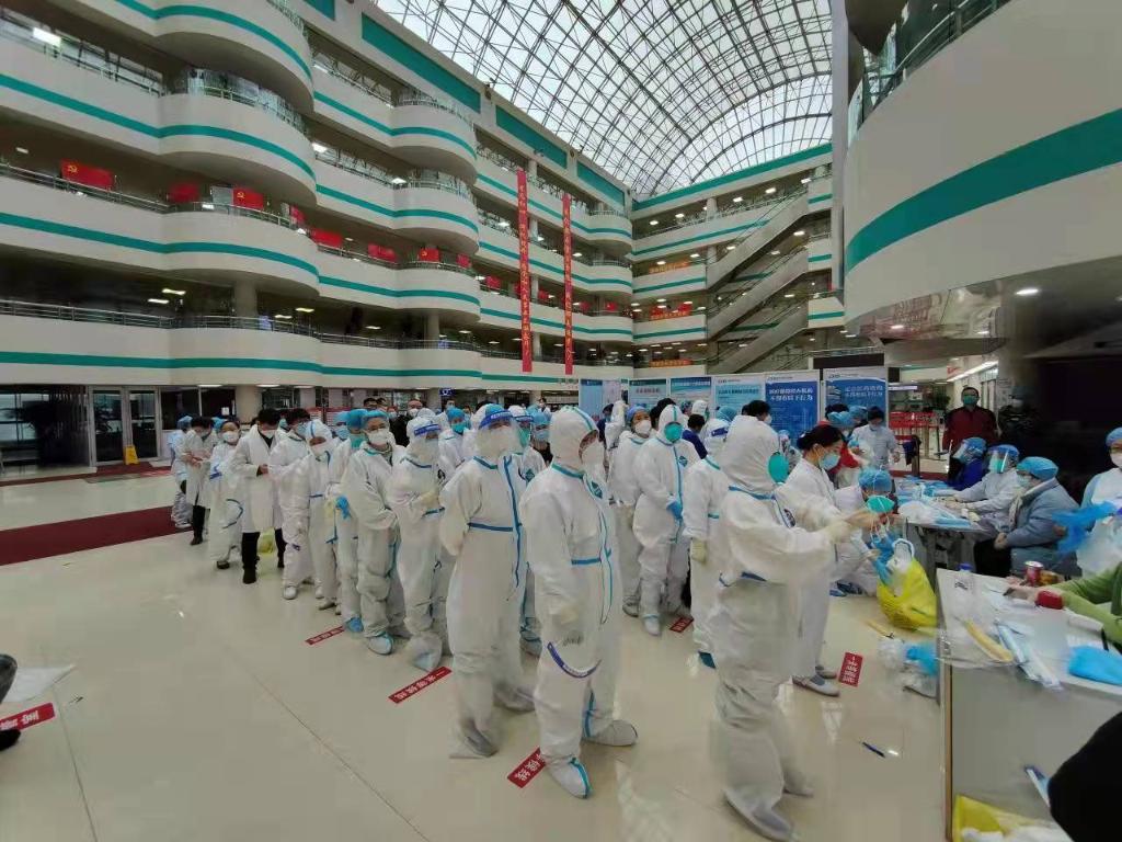 全院近2500人全员请战。23个疗区迅速划定,其中900多名医护人员进入红区,1000多人投入各类保障。